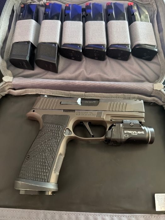I am selling my p365 axg legion I have had it for a year, there is a trl7 hlx sub on it and I have a custom holster from havok holsters for it aswell. I have 5 17 round mags and 2 21 round mags that go with it aswell as the legion bag that holds it all. The value of everything new would be almost 2,000