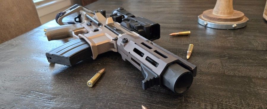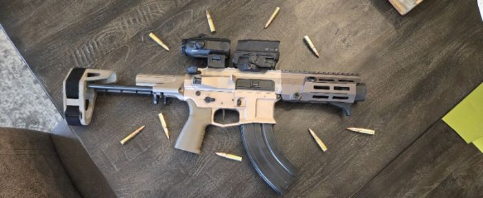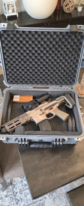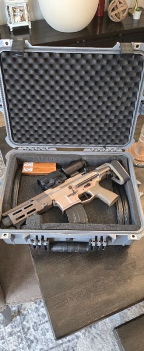 This is basically a Honey Badger in 7.62. Maxim outfits SEAL's and other elite forces with their weaponry and the built quality is incredible. This was $2,600 bone stock new and I added the $300 Maxim telescoping/sliding brace and Franklin Armory Binary Trigger system. Shoots semi and binary separately along with the safety. Absolute riot at the range and quite the fire breather with such a short barrel, Amazingly accurate out to a couple hundred yards. Loves high quality brass because of the precision AR style build, but it will shoot the steel stuff. Probably about 250 rounds through it in total. So incredibly compact it's the perfect truck gun and can fit in most backpacks. Includes a nice pelican style hard case, several metal mags and a bunch of ammo. The Vortex AMG UH-1 optic (like an Eotech) alone was over $500 and the Monstrum flip out magnifier was a couple hundred as well. No trades. Cash or Venmo only. Will require an Idaho DL, must be of legal age and will provide a BOS and exchange info.