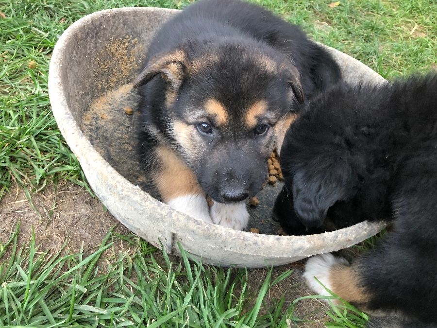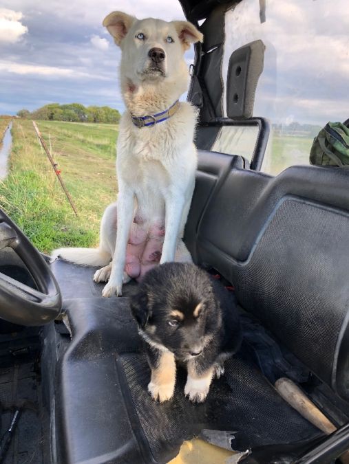 Husky/German Shepard (shepsky) puppies. These puppies are 6 weeks old and ready for forever homes! They have been raised on a working ranch with cattle, pigs, chickens, cats and other livestock guardian dogs. They have been socialized with kids of all ages. These dogs will be big 80-110 pounds, they are very active and will need homes that keep them busy.
