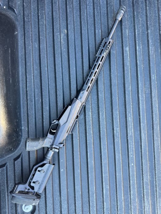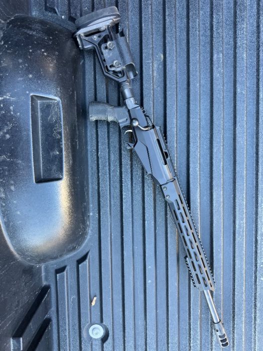 Tikka TacA1 in 308. 20” barrel with factory comp. Has a Sterk bolt handle, picatinny section up front. Comes with 3 10 round mags.