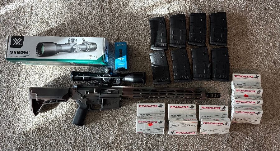 Diamondback DB10, 16” barrel, VG6 brake, Magpul SL-S stock, comes with 8 magazines and 200 rounds of Winchester ammo. The optic is not included. Asking 800/obo, might be open to trades. Text is best, 208-860-6458. Must have a valid Idaho identification and be legal to own a firearm.