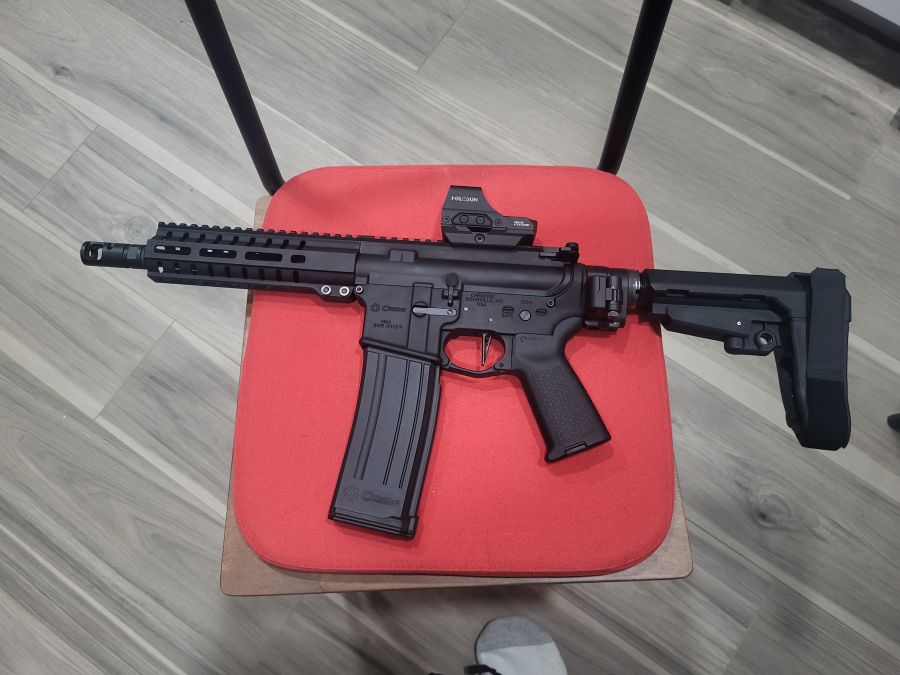 I have an AR Pistol in 5.7 with a super safety, folding stock, and optic installed. I also installed a heavier buffer and spring. Barrel is 8 1/2 inches. Comes with 4 full mags. One mag is 42 rounds, the other three are 30 rounds. Extra ammo as well. Shoots amazing, super reliable. With the super safety it will shoot a whole magazine full auto if you want. The folding stock is convenient, I can fit the gun in a small backpack with ease. And then when shooting I can fold the stock back out and extend it and it feels like a full rifle. Absolutely love this gun, just wanting to liquidate some of my possessions. I bought the gun new from Idaho Arms and Ammo in Meridian Idaho. Have all receipts.