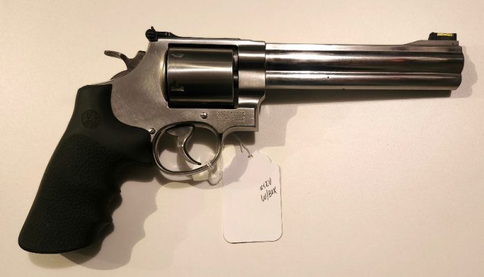 Smith & Wesson Model 629-6 Classic .44 mag 6.5" barrel stainless steel Revolver in Excellent used condition. With box. With non-fluted / unfluted cylinder upgrade. Sale Price: $899.99 ptx FFL by appointment only. Serious inquiries only. Call 208-286-7300 or email me at patriotpawnidaho@gmail.com. If I don’t pick up, please leave a detailed message, I will call you back promptly. I screen calls to make sure these are legitimate local inquiries.
