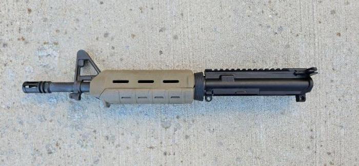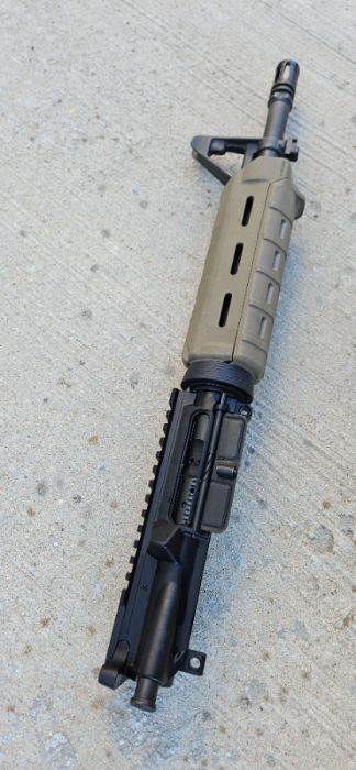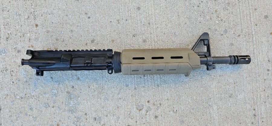 This upper is a standard AR pistol style upper, no frills. 11.5" Brownells barrel on an Aero Precision upper receiver, with BCG, charging handle, and a Magpul MOE handguard.