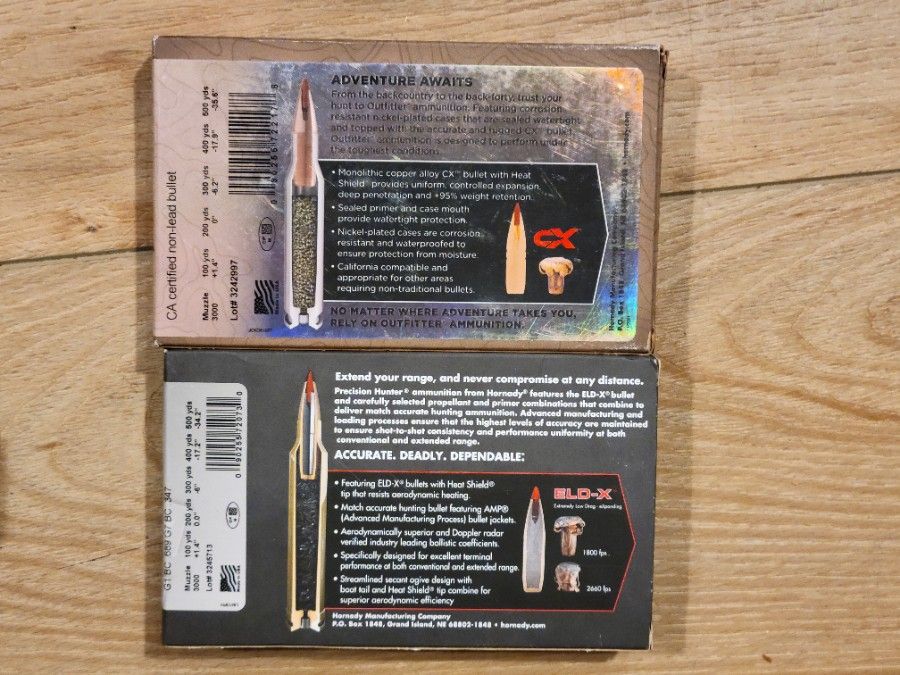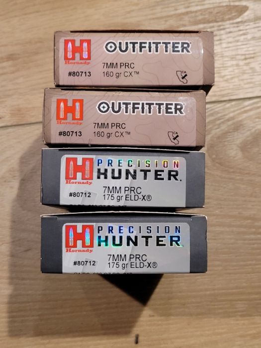 I bought six different types of ammo to see what my rifle liked the best. This is just left over. I have 21 rounds of the outfitter ammo and 33 rounds of the precision Hunter pictured here. Still in boxes. I will also include about 50 rnds of used (1x) brass from this same 7PRC ammo. Bought for about $60 per box. Selling as a set all together for $100, so you save 33% off retail. Price firm and fair. I don't need to sell, but just don't want them sitting around.