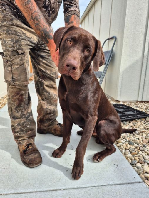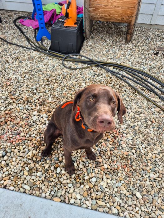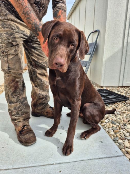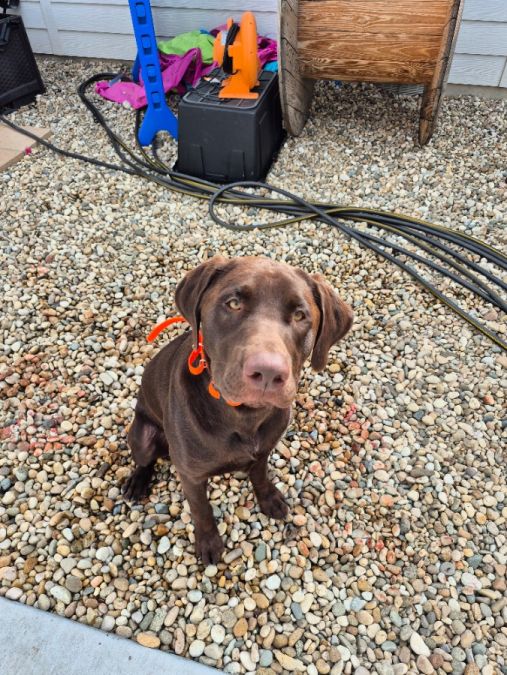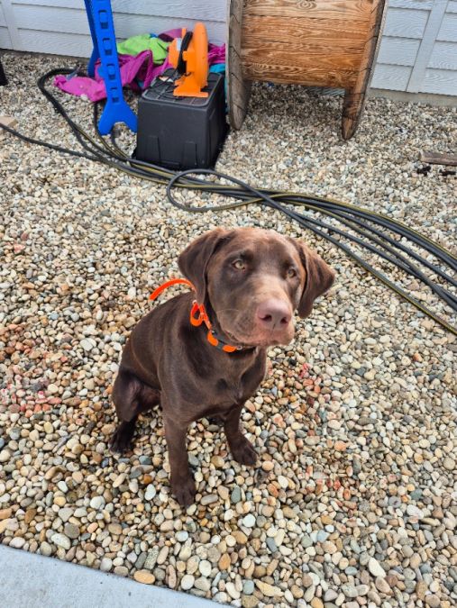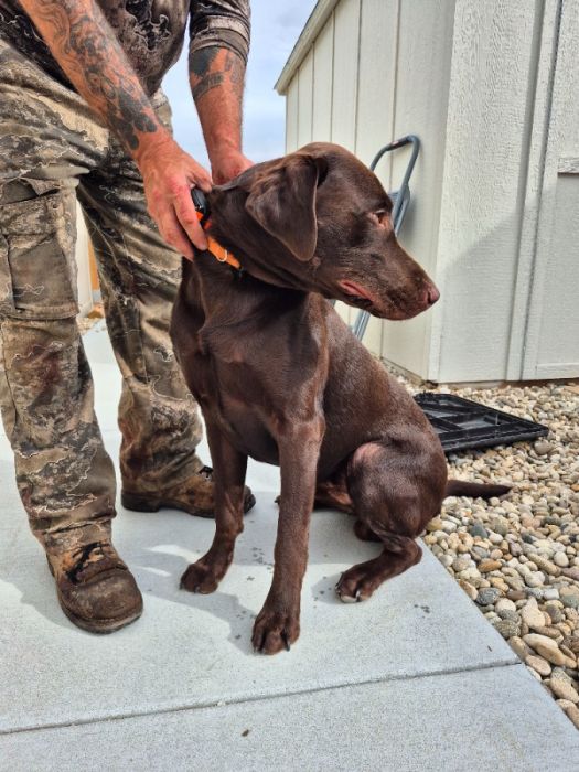 In tact, trained by honorable k9, but our family hasn't followed up with training well. Knows simple commands, dog door trained. VERY active, good boy. Great for families that hunt, spend a lot of time outdoors, fish, run, etc