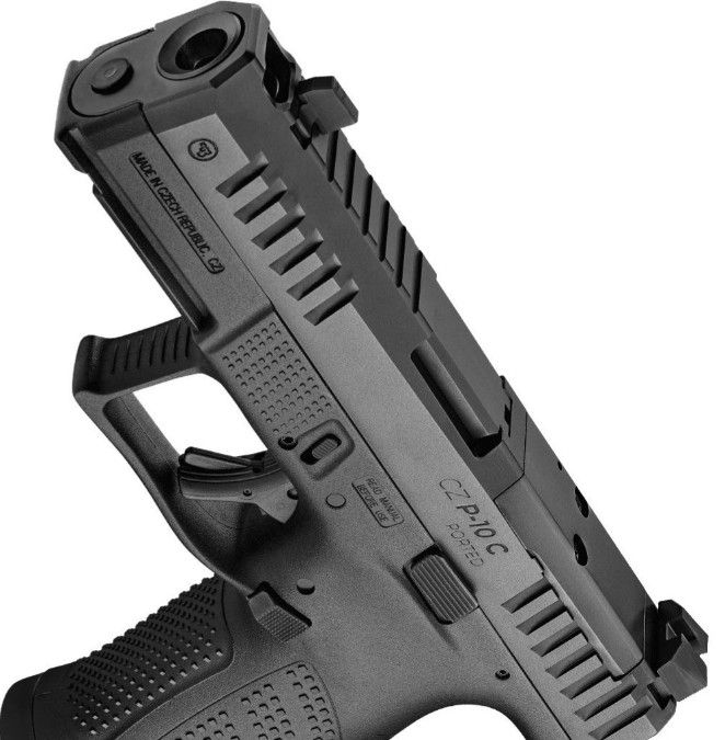 CZ-USA CZ P10C PORTED OR 9MM 4" 15-RD $495 Frame Finish: Black Nitride Front Sight: Fixed Dot Rear Sight: Fixed Dot Grips: Polymer Features: 3 Interchangeable Backstraps | Swappable Magazine Release | Hammer-Forged Ported Barrel Slide Description: Black Polycoat Weight: 26.8 oz. Finish: Black Magazine Count: 2.00 Gas System Length: Pistol Firing System: Striker Frame Material: Polymer Magazine Type: Double Stack Magazine Trigger Pull Average: 5.60 Trigger Guard: Squared Barrel Configuration: Single Barrel Description: Cold Hammer-forged $549