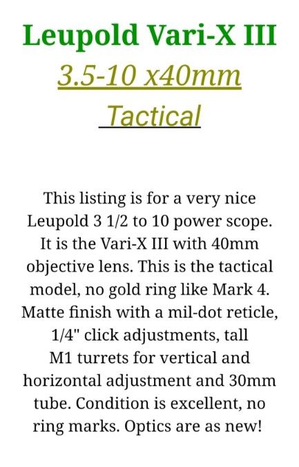 Remington 700 .308 Police Special Leupold 3.5x10x40 Tactical 30mm scope.