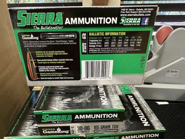 I have 4 cases of Sierra Game Changers 30-06 Springfield 165 Grain GameChanger Tipped GameKing, Boxes of 20 $24.75 Per Box