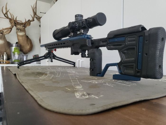 This is a well cared for?, great condition, and great looking rig. Action is a rem 700 that has been trued and bolt face squared. Barrel is a lijla. Has less that 300 rounds fired. New powder coat and it looks great! Chassis is an MDT premiere acc. This is a great setup to have fun with or compete. Selling chassis and rifle with rail for $1990 does not include bipod or scope.