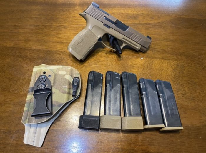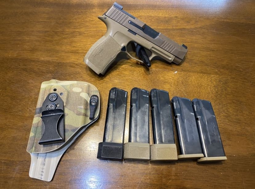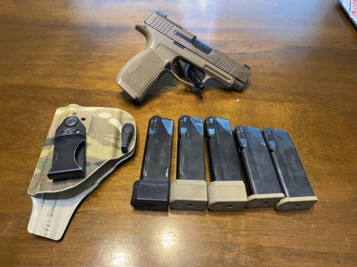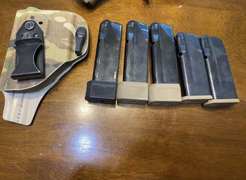 The P365XL Coyote 2A Edition stands out with its Optics Ready Slide, allowing for easy installation of your preferred red dot sight. The Integrated Carry Magwell enhances reload speed and efficiency, while the Flat Trigger with a 90 Degree Break provides a crisp and clean trigger pull. The Coyote finish adds a unique aesthetic appeal to the robust stainless steel slide, and the polymer frame ensures durability without adding unnecessary weight. MSRP $640 Comes with 5 mags total, (Three, 17 rounders), (Two, 12 rounders) From factory it came with, (Two, 12 rounders) and (One, 17 round) mag. The extra 17 round mags are worth $50 each. Also comes with holster, however the holder is meant for a light or laser and does not work without the light on it. Gun has normal holster wear. Total of 400 rounds through the gun. Also has factory night sights. Please text me at (314)-402-0336. I will not answer calls.