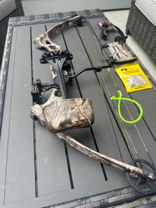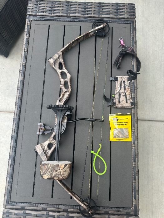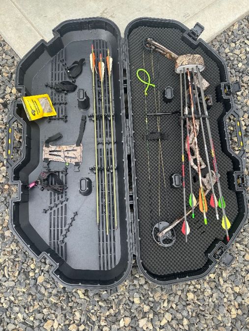 Adjusted last year with new strings Has arrows and tips and other accessories The case is heavy duty for travel.