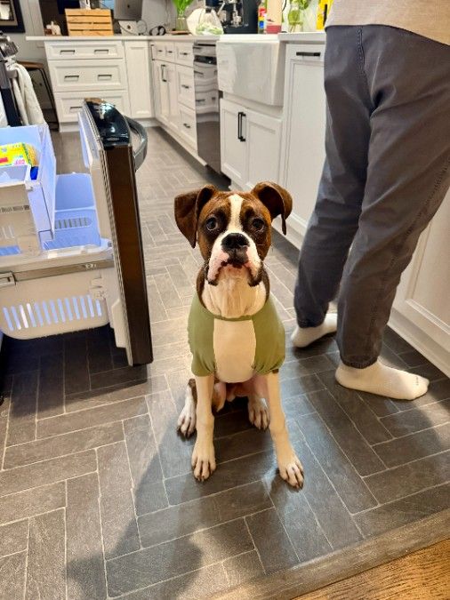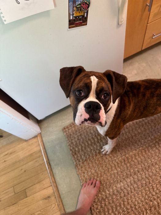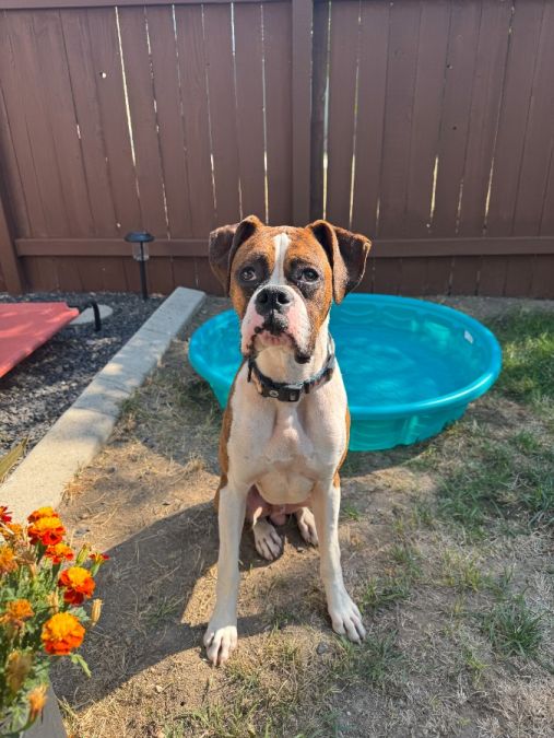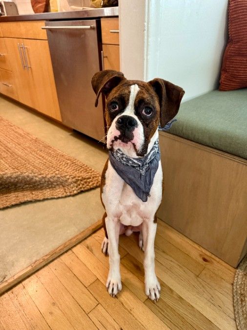 Meet Mr. Theo. He’s a 10-month-old purebred Boxer (born December 13, 2024). We love him so much, but it turns out I’m allergic to his short, wiry coat, and it’s become clear that he’d thrive even more in a larger space where he can run, play, and let out all his puppy energy. About Theo: • AKC Registered • Potty trained and crate trained • Knows sit, shake, lay down, and stay • High energy — needs a big yard and daily exercise • Great with kids, though he still jumps and play-bites like a typical puppy • Goofy, snuggly, and loves being with his people • Microchipped • Not neutered yet • Good with other dogs (I took him to lots of dog parks as a puppy to socialize him) • Cats don't really like him because he just wants to play with them, but they end up getting annoyed and scratching at him • Up to date on all of his vaccinations Theo has a big personality and an even bigger heart. He can be stubborn at times (very Boxer!), but he’s smart, eager to learn, and would thrive with consistent training. A structured program would be wonderful for him. A few notes: If breeding is of interest down the line, his breeding rights can be purchased through his original breeder (Mountain Boxers - Ogden, UT). We paid $1,400 for him and are asking a $500 rehoming fee. Before meeting in person, we’d like to do a quick FaceTime or home visit to make sure it’s the right fit for both sides. Ideally, we’d love to find someone with Boxer experience who understands their energy and needs. If you think Theo could be a great match for your home, send me a text or give me a call.