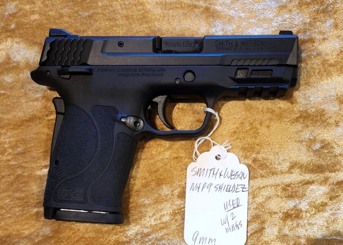 Smith & Wesson Shield EZ 9mm pistol with Light Rack Slide for easier operation, perfect for seniors or women who lack the hand strength to operate normal slides. This pistol is one owner in excellent used condition with 2 total mags and manual (see pic). Sale Price: $329.99 ptx (includes cash or debit card discount) FFL by appointment only. Serious inquiries only. Call 208-286-7300 or email me at patriotpawnidaho@gmail.com. If I don’t pick up, please leave a detailed message, I will call you back promptly. I screen calls to make sure these are legitimate local inquiries.