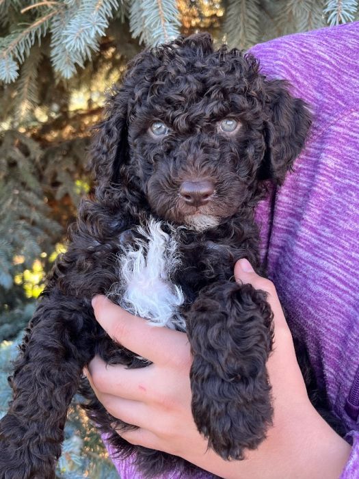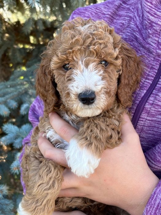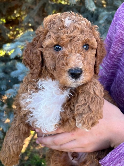 Sweet family raised moyen poodles ready for their homes in two weeks. They have great personalities, they love kids and are working on crate training. We have started potty training and anticipate them to be 30-40 lbs full grown. They come from genetically tested family parents. They will make great friends or family additions!