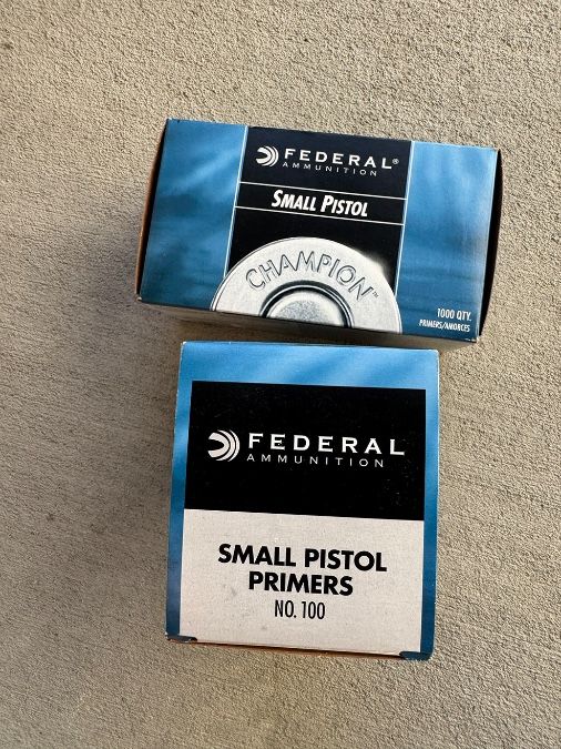 Federal Small Pistol primers No. 100. Two boxes 1000qty.