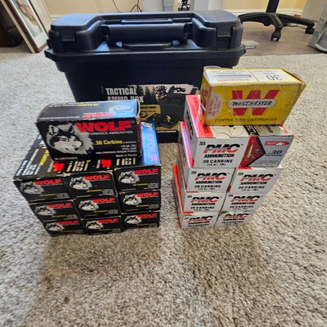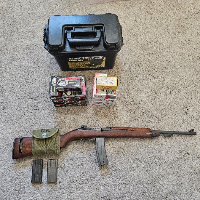 WW2 M1 Carbine made by I.B.M I am amazed on how great this shoots with accuracy. Manufactured by I.B.M in 45. Comes with everything you see in the photos. 1 30 round magazine. 2 15 round mags The rifle ammo pouch and sling are not original but a good and functional replica. Hard shell case 940 Total Rounds of 30 Cal ammo and ammo box 450 Wolf Steel Ammo 400 Brass Ammo 50 Rounds Brass Hollow Points 40 Rounds Mixed Steel/Brass Ammo (See Photo) Fair Deal $1850 Cash, no trades,