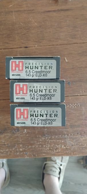 Hornady precision hunter 143gr. ELD-X 6.5 Creedmoor ammo for sale here, three full boxes, $100 for everything obo no trades.