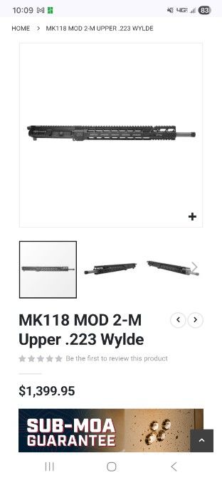 PWS MK118 MOD 2-M upper 223 wylde with 1:8 twist barrel. This upper is in nearly new condition. I bought this to set up for night hunting but never ended up doing it. Very low round count. Somewhere around 100 total. Asking $900 no trades please.