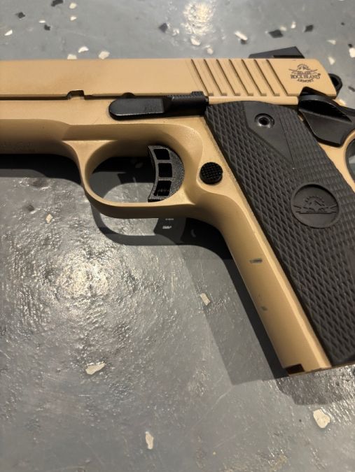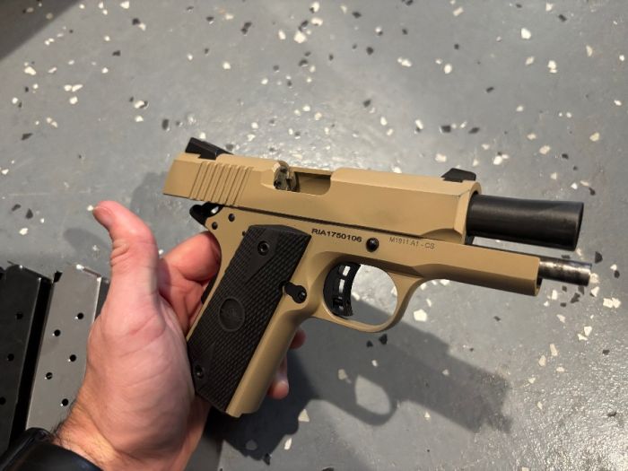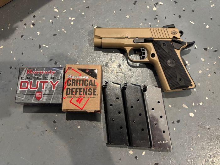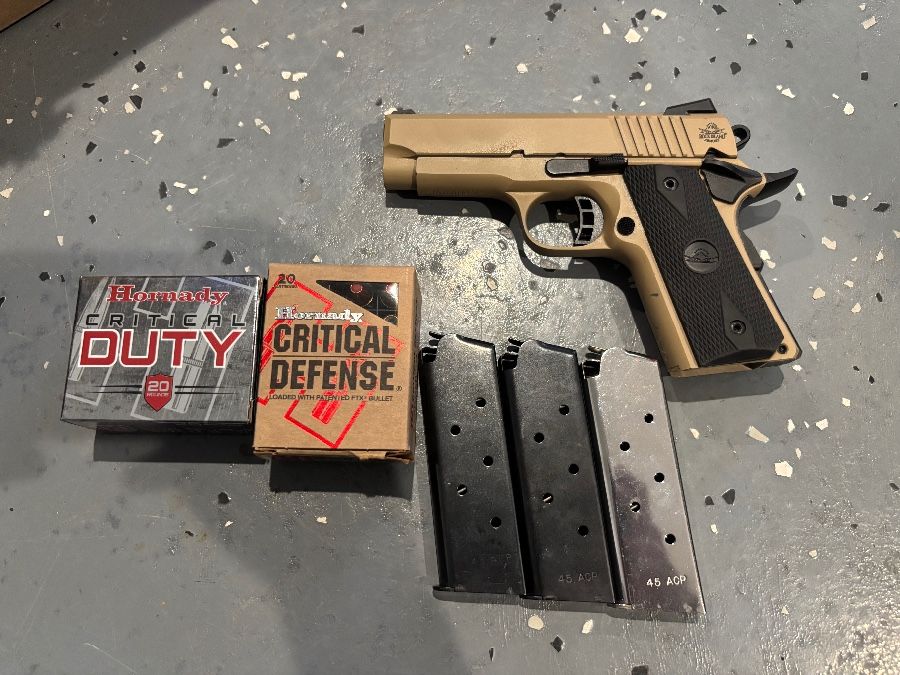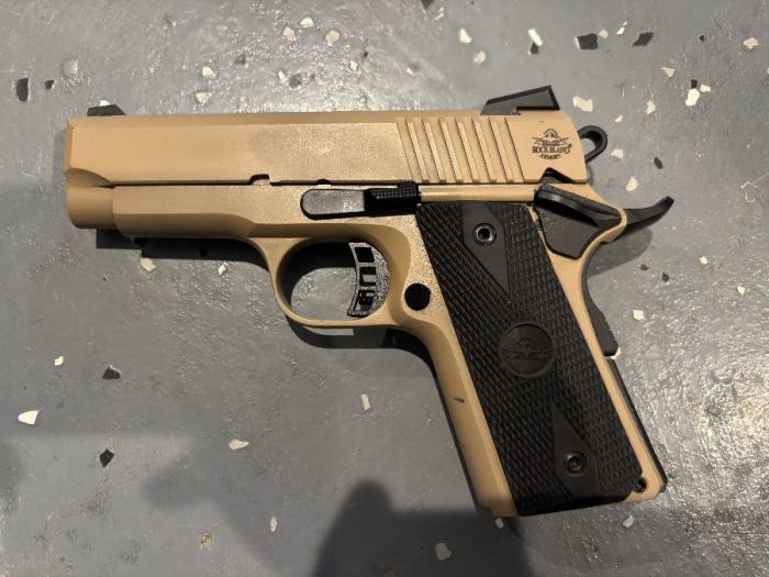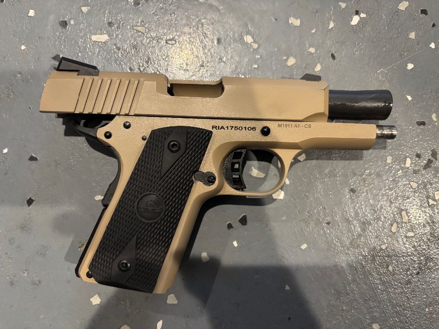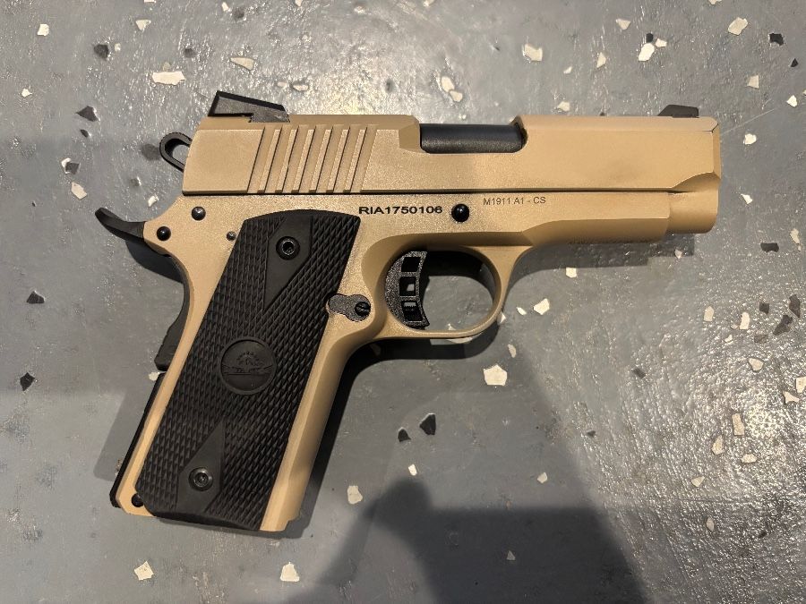 Rock Island Armory M1911 A1-CS .45 ACP — Flat Dark Earth. Works great, trigger is excellent. Includes 3 mags that hold 8 rounds. It’s the compact size, which I’ve loved- great size for conceal carry. Small scrape on left grip (cosmetic). Super fun gun to shoot and shoots great, I just never use it and hate to see it sit in the safe. Asking $500 OBO- if purchased at full price I’ll include 40 self defense rounds. Must be able to purchase firearm and sign a bill of sale. I am located in the Twin Falls area, but will be in the Boise area 10/25 and 10/26. Text is the best method of contact.
