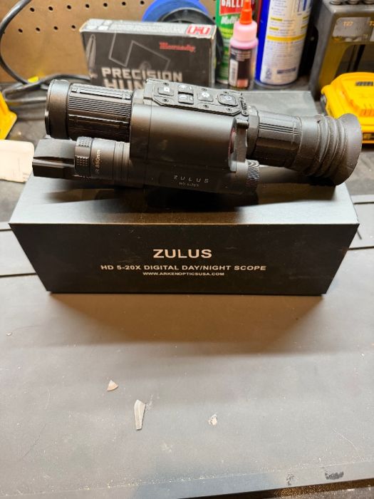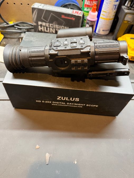 Arken Zulus 5-25 night vision scope, built in rangefinder and on board ballistics. This scope is an older model, they are now made by DNT but they are the exact same. Comes with original box, Manuel and mount. 550$ or best offer. Willing to trade