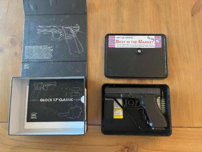 Up for grabs is my Glock 17 Gen 1 remake. It has not had many rounds shot through it and is in great shape. Included is the handgun itself, original box, manuals and a magazine. This is a great historical piece and shooter. Text me at 509-845-4144.