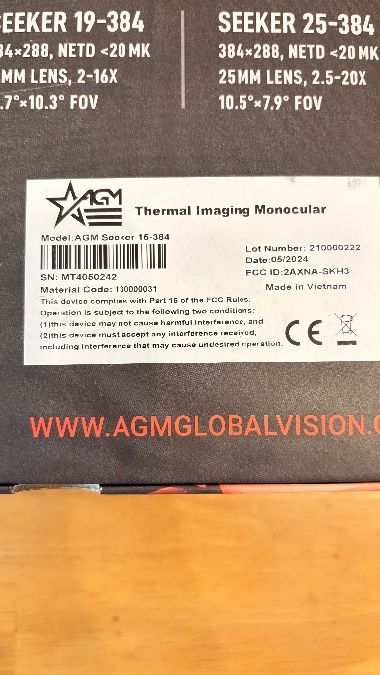 Bought last November. Lightly used. Comes with everything in the pic, box, charger, and extra battery Description: AGM Global Vision 15-384 Thermal Imaging Monocular 20mK, 12 Micron, 384x288 50 Hz, Black, SEEK15-384.