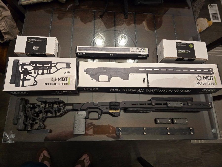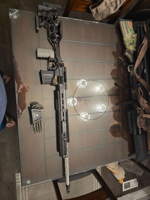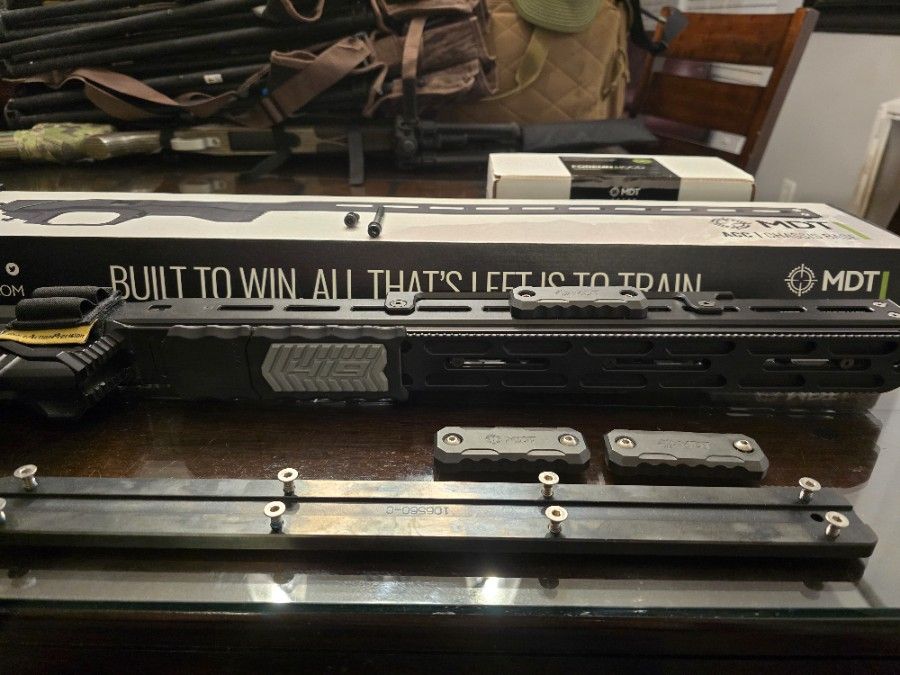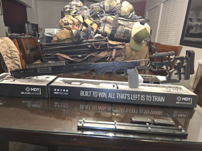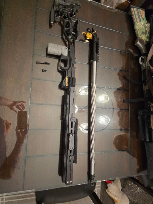Includes weighted BAG RIDER, INTERNAL WEIGHT BAR, 6 EXTERNAL WEIGHTS, FOREND HOOD (NIGHT VISION), AREA 419 20" ARCA LOCK RAIL, AREA 419 ARCA LOCK PADS, ACTION SCREWS, SHORT ACTION PRESITION AMMO HOLDER -$800 O.B.O IF YOU WANT THE BARRELLED ACTION WITH IT (DEFIANCE SHORT ACTION RUCKUS TACTICAL NITRITE COATING, IBI 24" M24 BARRELL FLUTTED 6 GT, TRIGGERTECH DIMONDS SPECIAL EDITION IN GOLD ILL TAKE OFFERS. 951-858-0597 JOE. ONLY GENUINE OFFERS PLEASE.