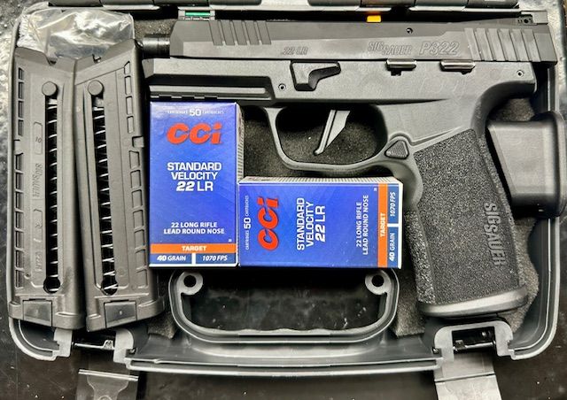 Like new Sig Sauer P322 with extra mag and 100rds CCI Standards ammo. This Optic Ready P322 comes with Original case, Tree x 20 rds Magazines, Threaded Barrel Adapter, Interchangeable Trigger Shoes (Flat and Curved), Fiber Optic sights, Ambi Safety and Controls, Magazine Loader, and 100rds of CCI Standard ammo. Took it out two times, but it is too soft and gentle for me. I am just not into 22LR Pistols. All cleaned up and ready for you. Asking $360 firm (Value of $470). Idaho resident only. I also have bulk 22LR ammos if interested. Open to trade for Glock Gen 5 9mm with extra on my end.
