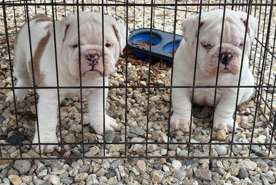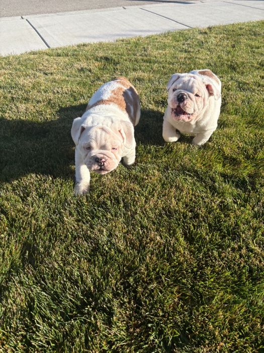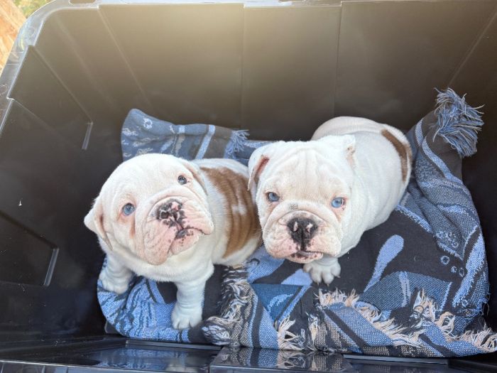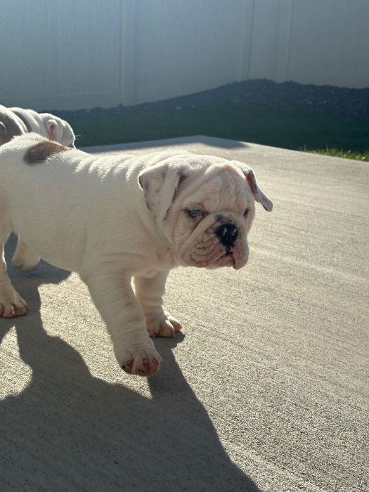 9 weeks old 1 male - blue eyes, brown spot on back 1 female - speckled nose, different colored eyes & more brown on her back AKC Registered