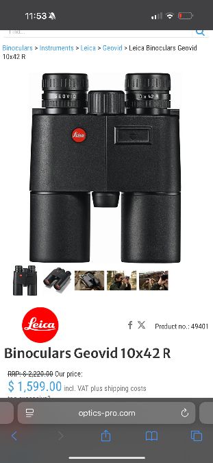 Leica 10x42 geovid R range finding binoculars - $800Listing ID: 144591