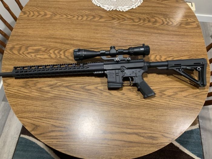 Little use XLNT condition. 20" bbl, 1-7 twist. side lever charging. comes with 30rd. mag. and 4X12 Bushnell scope. Very accurate especially with the heavier bullets (77g.)