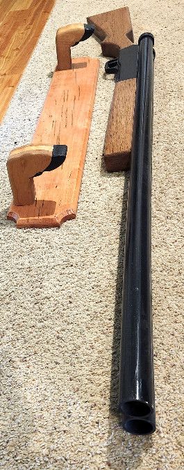 Huge Wood Shotgun Wall Art hand-made in Star Idaho by an old-timer out of his garage. Comes with wall-mount pictured. Stock is made of wood. Barrels are painted pvc pipe. Wall-mount is made of wood. Cool Idaho decor for cabin, man-cave, etc. Price Drop: $100.00