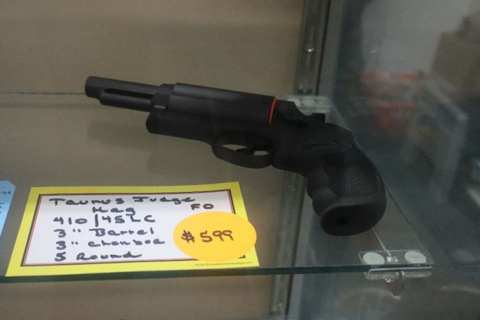 TAURUS JUDGE MAG, 4410 TRACKER, 410/45LC, 3"BARREL, 3"CHAMBER, 5ROUND CAPACITY, FIBER OPTIC FRONT SIGHT, RIBBER GRIPS, BLACK. JUST ARRIVED WITH AMMUNITION. $599. PONDEROSA SPORTS, 6854 HIGHWAY 55, HORSESHOE BEND, IDAHO 83629. 208-793-3121. OPEN 10-6 DAILY. CLOSED ON TUESDAY.