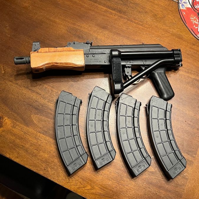 Selling my Century Arms Draco Mini pistol, chambered in the glorious 7.62x39 - because sometimes, subtlety is overrated. This thing hits like a freight train and tucks like a gentleman. Features: • Trunnion-mounted folding brace • Four 30-round polymer mags included • Low round count, clean bore This is your chance to own a Romanian fire breather that fits in a backpack but punches way above its weight. Whether you’re building out a CQB setup, collecting AK variants, or just like your firearms short and spicy—this is your piece. Located in Caldwell.