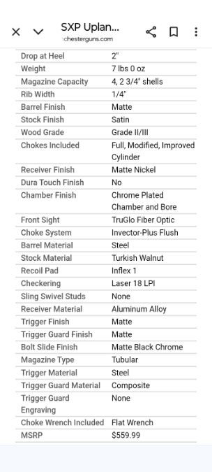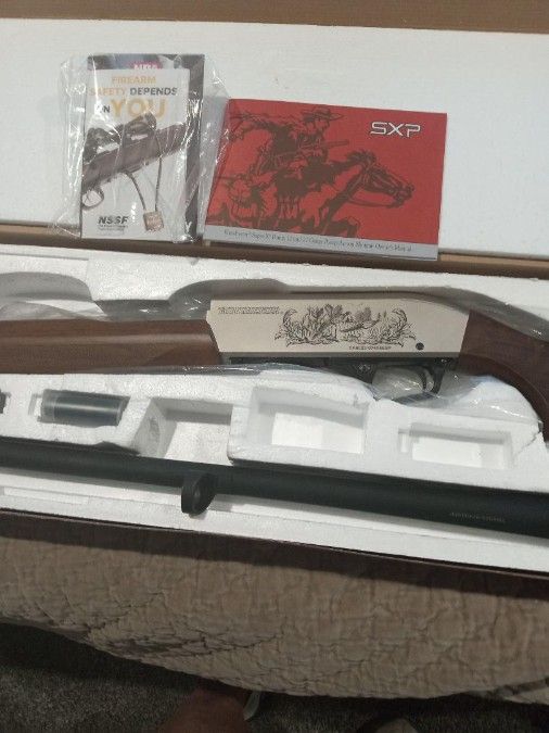 2 3/4 or 3" shells, comes with 3 chokes and choke wrench, upgraded walnut stock, nickel plated receiver. less than a dozen shells fired. This gun retails on Winchester site for 560.00. text is best Trades? maybe a G19, Sig 365xl or S&W M&P 9mm