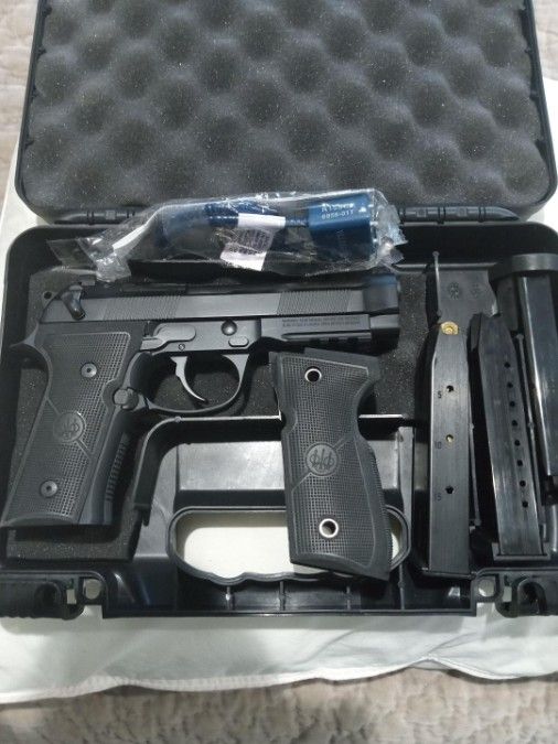 new in box, red dot ready, two 18 rd mags and two grips along with lock and hardside Beretta case. Trades? Ruger mini 14 or GP 100. Smith 686 Text is best, price is OBO Retail is 799.00 on this gun.