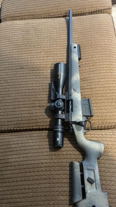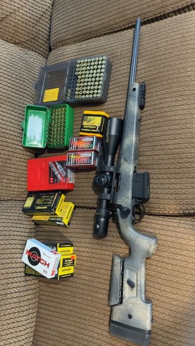 Begara 6mm creedmor with extras. -vortex venom 5-25x56 MRAD vortex rings with diving board - 2 5 round magazines -127 Hornady brass - 40 once fired Lapua SRP brass -1 box Hornady match 108 Eldm factory ammo -3 boxes Berger factory 109 hybrids (lapua brass) -1 1/2 boxes 108 eldm - 1 box 109 Berger hybrids - Hornady dies Have a load that shoots 5 shot groups under 1/4 moa. Picture is a 10 shot group. Might consider partial trades with cash.