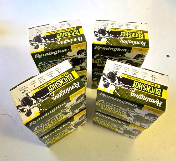 New, in box, Remington 9 pellet 2 3/4" Buckshot! Less than retail (8) boxes of 25, 200 rounds, cash, Nampa, $240 for all or $35 / box. Text 208-880-5039