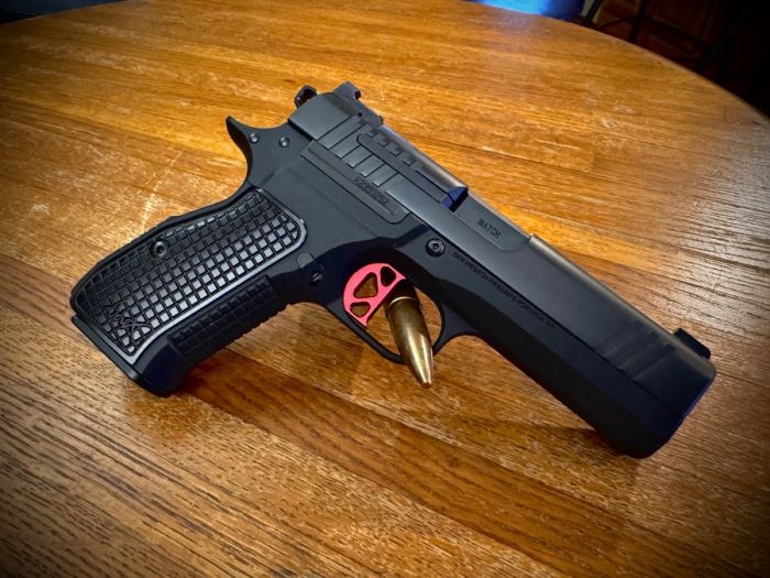 Want a high capacity 9MM but used to 1911 controls? The DWX is the pistol for you. 4" barrel, 15+1 capacity, night front sight with U shaped rear. Lightly used (one mag worth of test fire), excellent condition with factory bag. Includes Milt Sparks custom made 55BN holster ($155 value). Call or text 208-880-8085. $1299.99 cash only please.