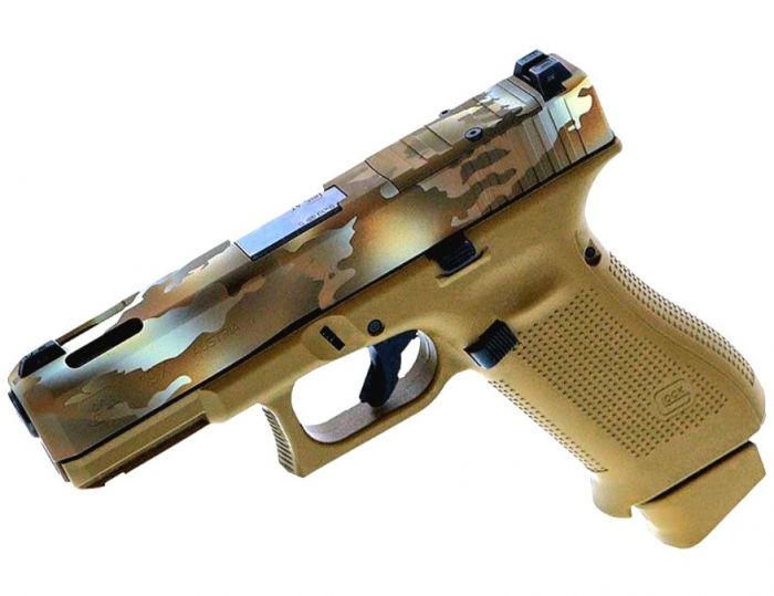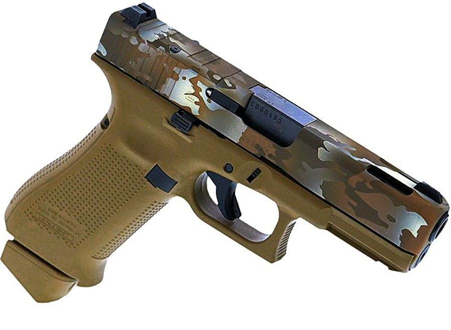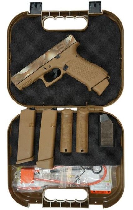 GLOCK 19XC GEN 5 OPTIC CUT "BROWN MULTI -CAM" 9MM PORTED 4" BARRELGLOCK NIGHT SIGHTS GLOCK19XC comes in the Brown Multicam color Optic Cut Slide with the first-ever factory colored slide, finished with a nPVD slide coating to prevent corrosion. Additional features include the GLOCK Marksman Ported Barrel (GMB), no finger grooves, ambidextrous slide stop levers and lanyard loop. Included with the pistol is a standard 17-round magazine, two 17+2-round magazines and coyote-colored pistol case. MODEL: G19XC Caliber: 9mm luger TYPE: Semi-Auto Pistol ACTION: Safe Action FINISH: Multi-cam STOCK/FRAME: Polymer Frame CAPACITY: 1-17 2-19 Round Mags BARREL: Ported 4.0" OVERALL LENGTH: 7.28" HEIGHT: 5.47" WIDTH: 1.30" SIGHTS:Glock Night Sights
