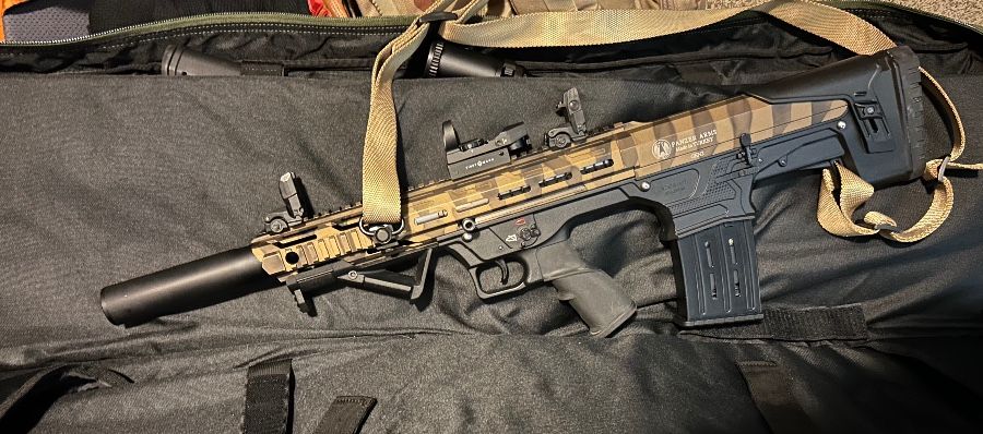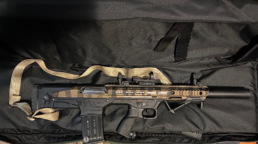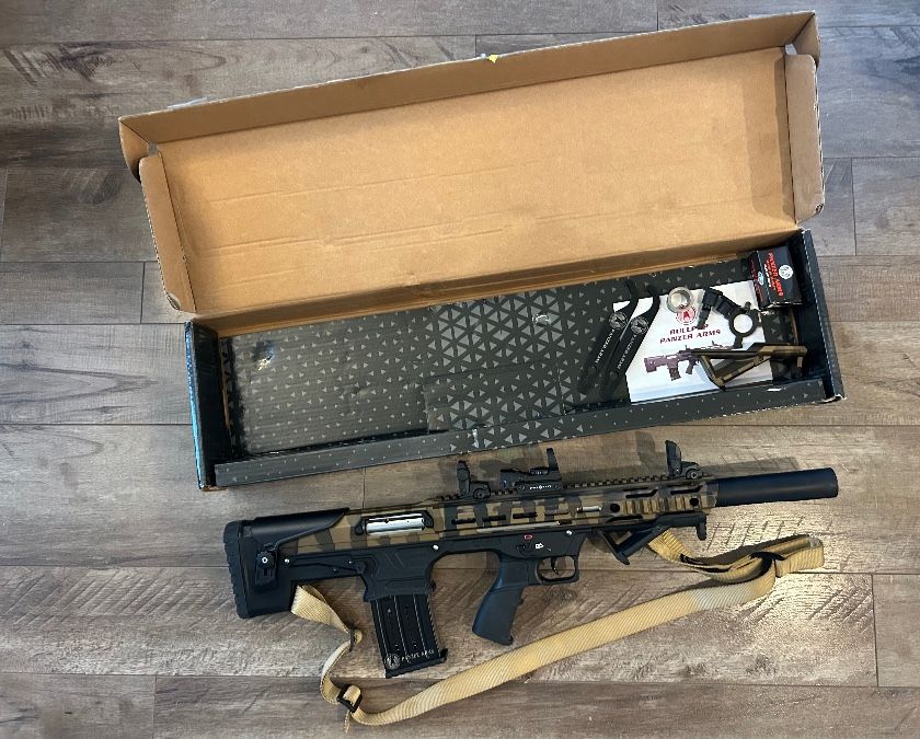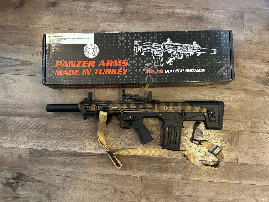 Brand new, never used, Panzer Arms BP-12 shotgun chamered in 12 gauge. It comes with the original box and paperwork, factory cerakoted in tiger strip camo. No trades, text if interested - Eight58-Three35-four402