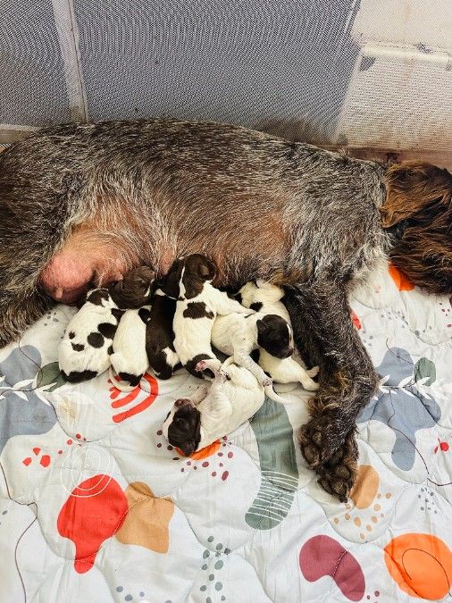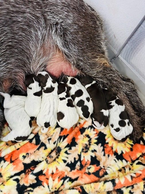NOW TAKING HOLD DEPOSITS! 5 males and 2 females will be ready for pick ups on 11/18/2025 . The puppies in this litter are from AKC Registered parents and can also be registered with the AKC. Also known as the Korthals Griffon, the Wirehaired Pointing Griffon is a medium-sized Dutch dog breed in the sporting group with wiry fur and signature facial hair. While they are known for their excellent dry land and water hunting skills, these dogs also make laid-back and affectionate companions. They have calm personalities and tend to get along well with respectful children and other dogs. Their low-shedding, hypoallergenic coats make this breed an ideal choice for owners with allergies. Wirehaired Pointing Griffons are fondly praised by breed enthusiasts for their humorous personalities and intentionally unkempt, lovable appearance. The Wirehaired Pointing Griffon is an excellent choice for a family dog, as it is especially loving toward its owners and gets along well with children.