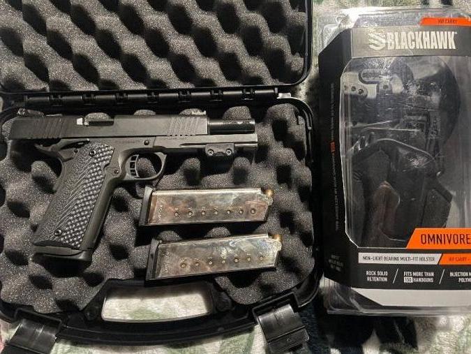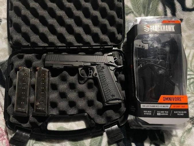 Like new in box tac ultra FS 1911 with 3 mags and Blackhawk omnivore holster. Only shot a couple times. Can include some ammo if interested.