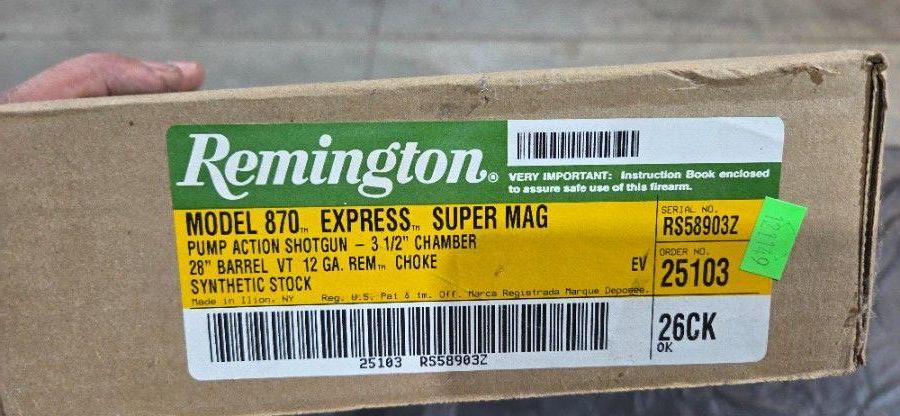 New Pump Action Shotgun 2 3/4" through 3 1/2" magnum chamber 28" barrel, 12 gauge, Rem Choke, Synthetic Stock Cash only All pickup done through Idaho Air Gun 222 W. Railroad St. Nampa, ID 83687