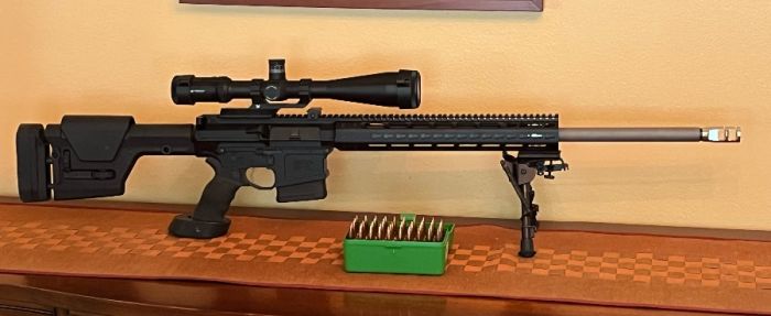 The ever so flat shooting 6.5 Creedmoor. Vortex Viper HS-T 6-24 X 50 VMR-1. 1/4moa (1/2 isn’t enough for long distance). External elevation AND windage knobs. Ballistic Advantage Premium Series 24” Heavy Barrel. Mega Arms MATEN extended rifle keymod upper and AMBI lower. AmericanTrigger Corporation AR-10 Gold Trigger. Harris Bipod 6-9" (leg notch) Rotate. Magpul Precision Rifle Gen 3 Sniper Stock. All brand new. 50 rounds 140gr BTHP
