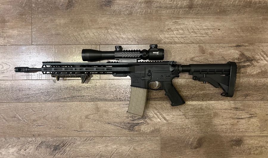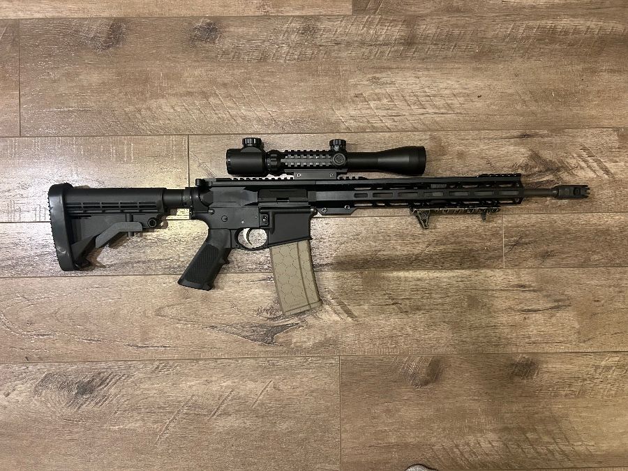 Anderson lower, Aero upper, PSA lower parts kit, Faxxon barrel, strike industries muzzle brake, strike industries dust cover, and an FDE hex mag. Solid lightweight build. All internals are clean, no malfunctions, runs and cycles very smoothly. Comes with the scope and everything pictured. Looking to sell to pay off bills. Cash only. Text if interested eight58-three35-four402 Serious Inquiries Only Please