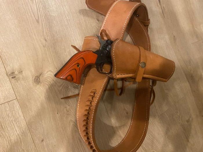 Are you the rootinest tootinest gunslinger in the Treasure Valley? Well, neither am I. But perhaps you can be. The rough rider. Fan fire it, do whatever, it’s a rough rider. The belt even has loops for 22 cartridges. I haven’t shot this much, hence I am not the rootinest nor the tootinest.