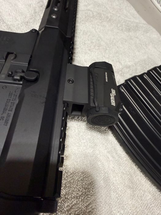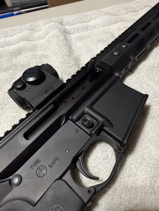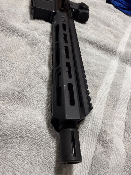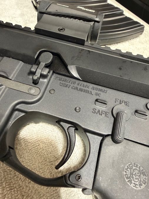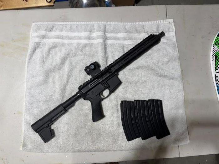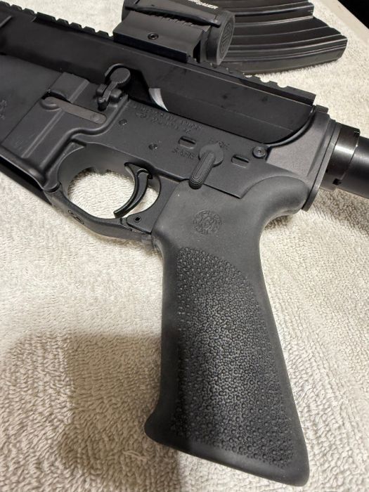 The gun is a Palmetto State Armory Lower that I bought fully complete. The upper is a Bear Creek 10.5 (5.56) chambered heavy barrel. Shot around 100 rounds through it with no issues. Comes with a Hogue grip, 3 Palmetto metal magazines and Sig Romeo 5 red dot. No Trades and will only sell to someone who can legally own a firearm. Must sign a bill of sale.