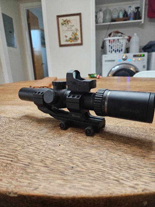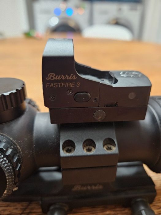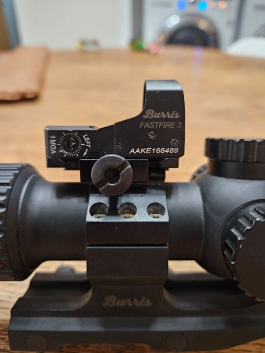 I have a Burris 1-4x24 Burris with red dot fast fire. Had this on my AR-15. It has illuminated circular reticle made for quickly engaging medium ranges target. This optic is a great 3 gun optic being able to engage at close and far distances. This optic is a few years old. Both the reticle and rod dot illums both work great.
